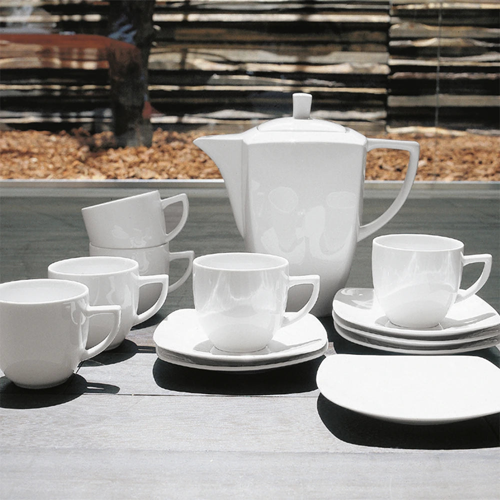 إبريق قهوة كافيتييرا على شكل مربع من البورسلين الأبيض من أدرياني إي روسي