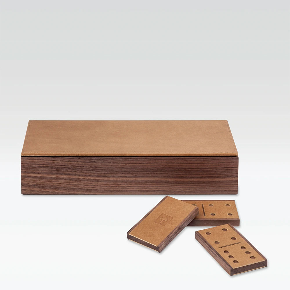 لعبة تتكون من صندوق خشبي بغطاء جلدي و28 قطعة مستطيلة. شعار أرماني/كاسا مطبوع بحرارة على كل قطعة وعلى ظهر الصندوق. يُنظف بقطعة قماش مبللة.