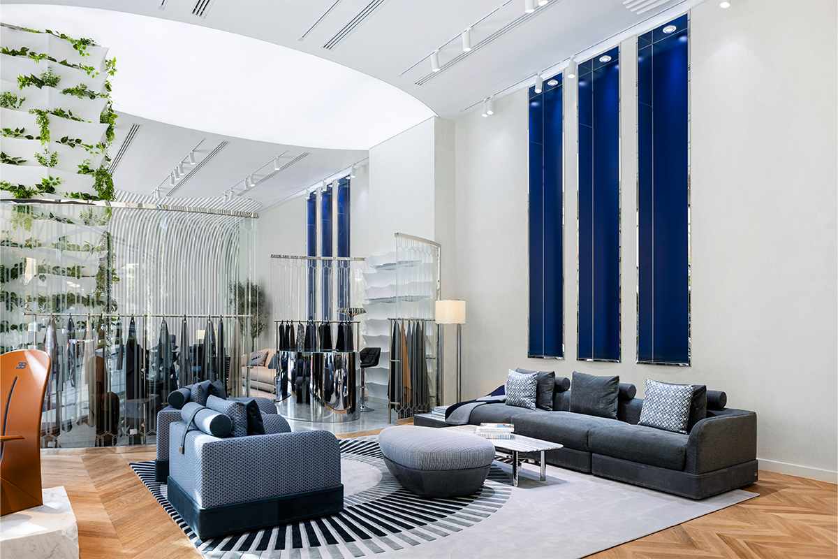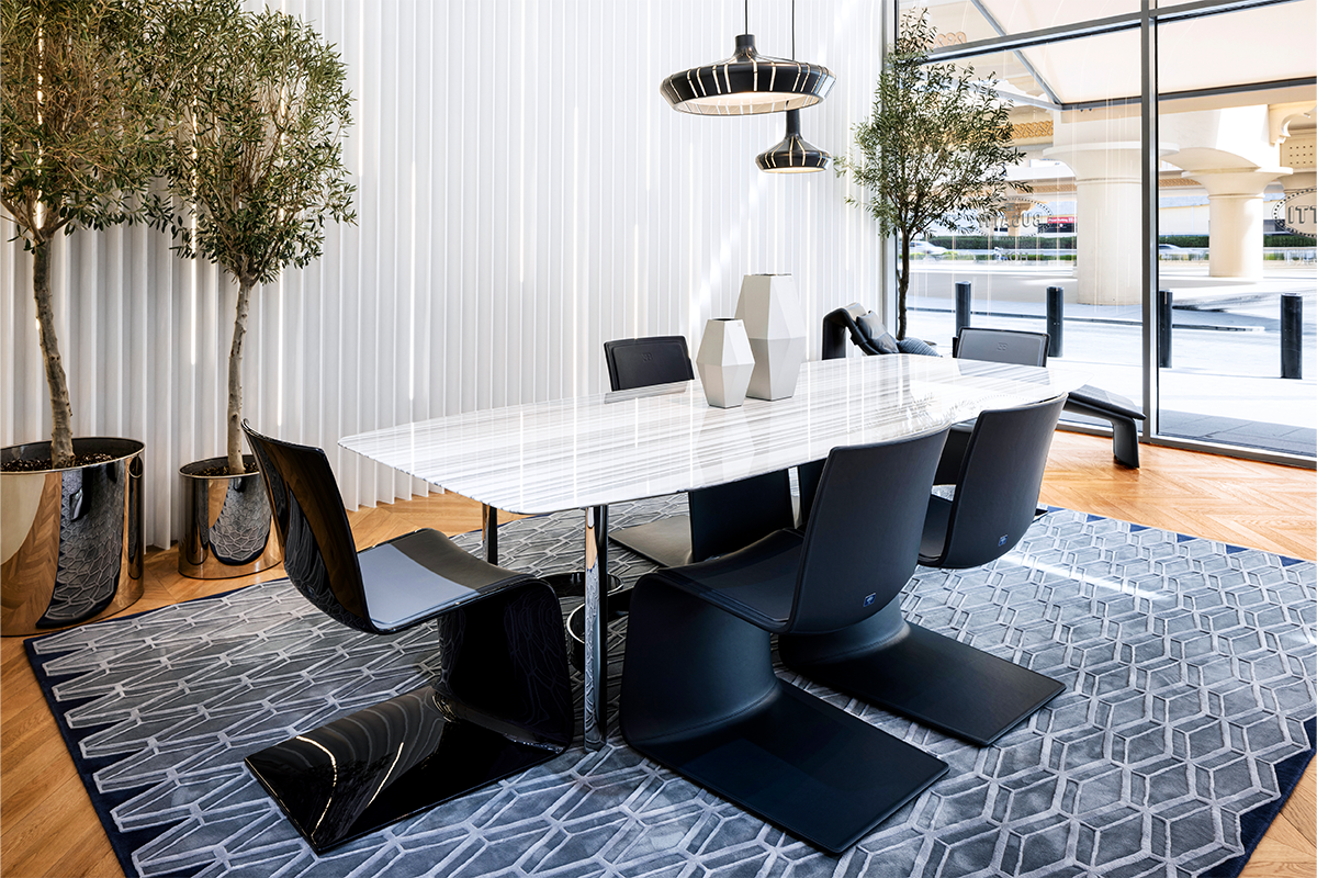 Exclusive leathers, the rare Sodalite gemstone, a reminder of Bugatti Blue, Striato Olimpico marble and extremely soft high-performance technical fabrics enable luxury and technology to be combined.